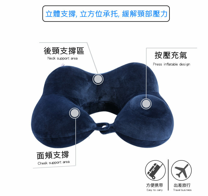 按壓式充氣水晶絨U型護頸枕 (JZ016)