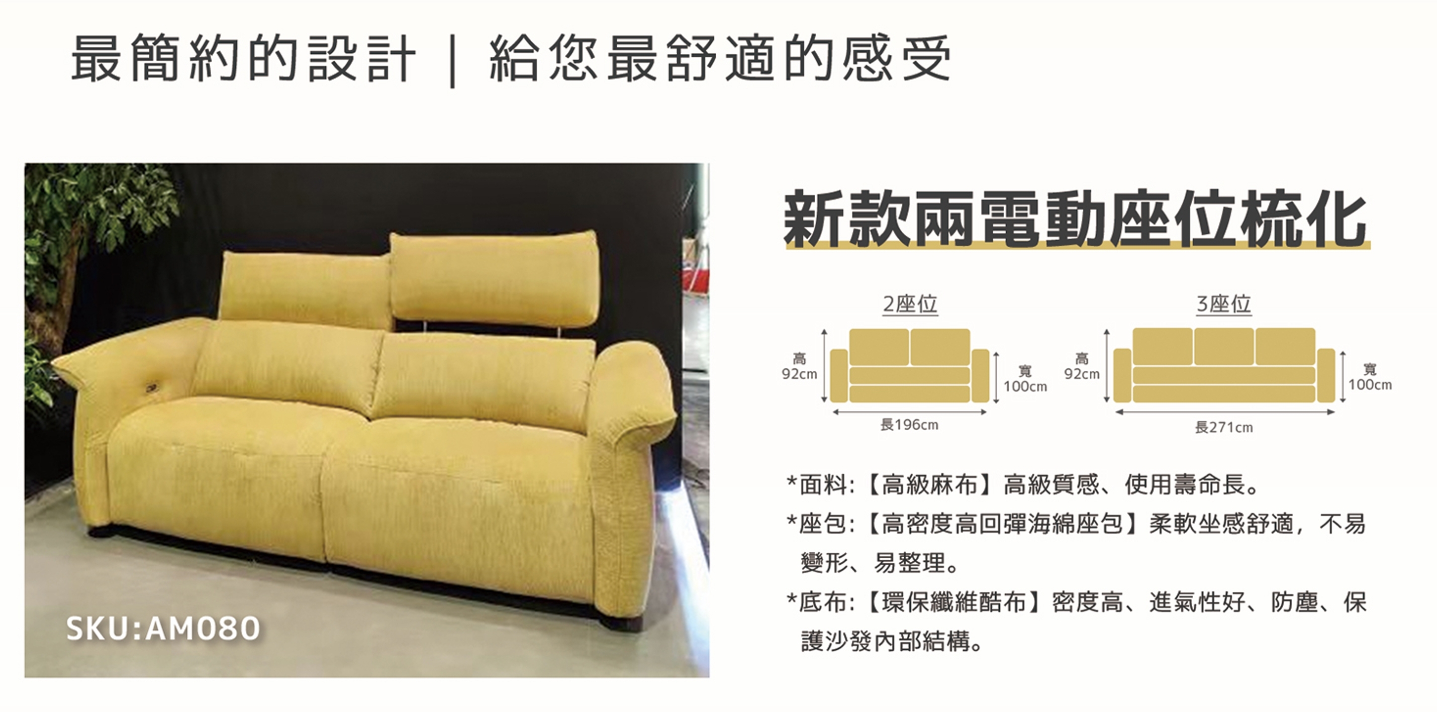 Ausaulio澳絲 新款電動雙座位雙功能梳化 (AM080)