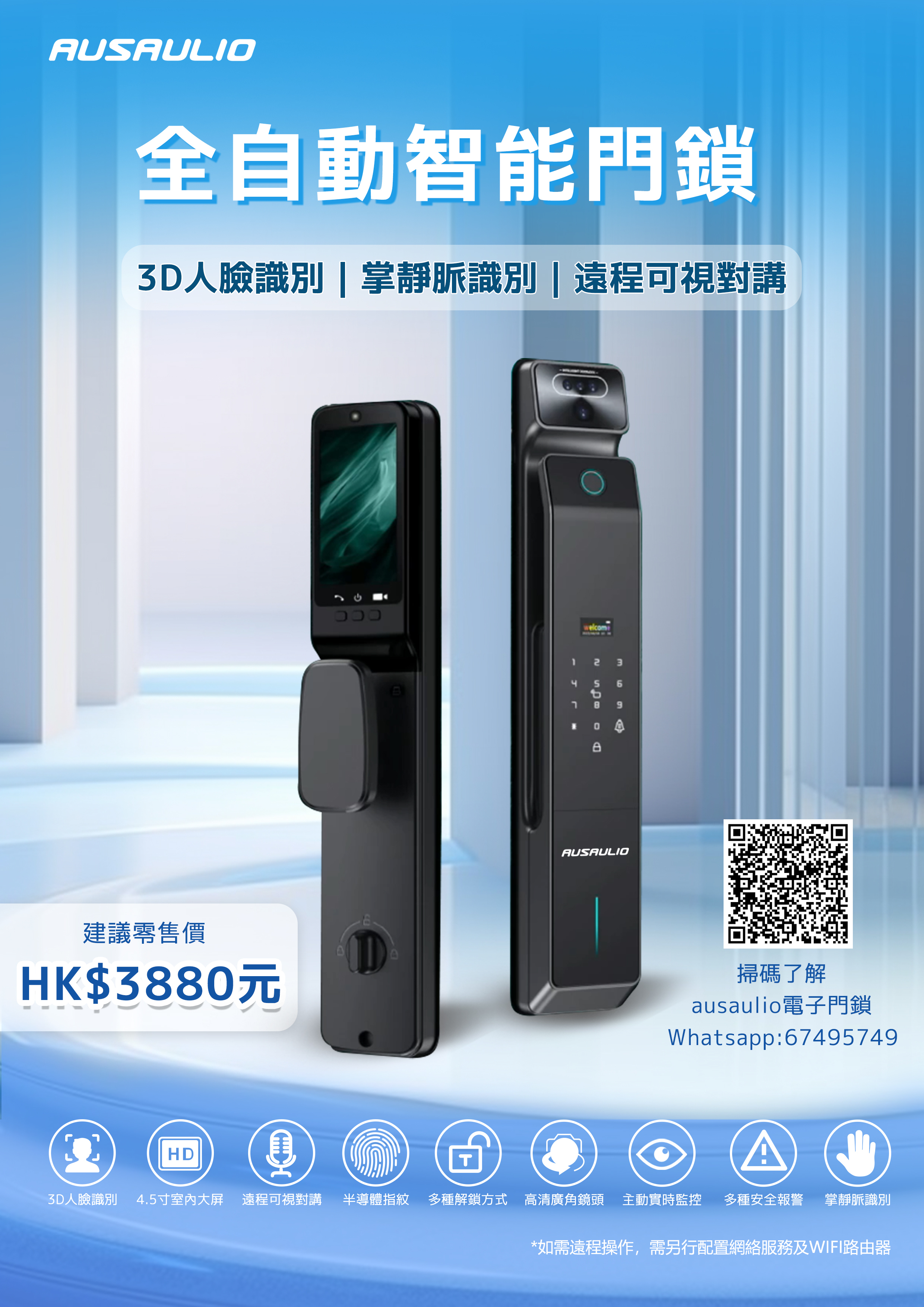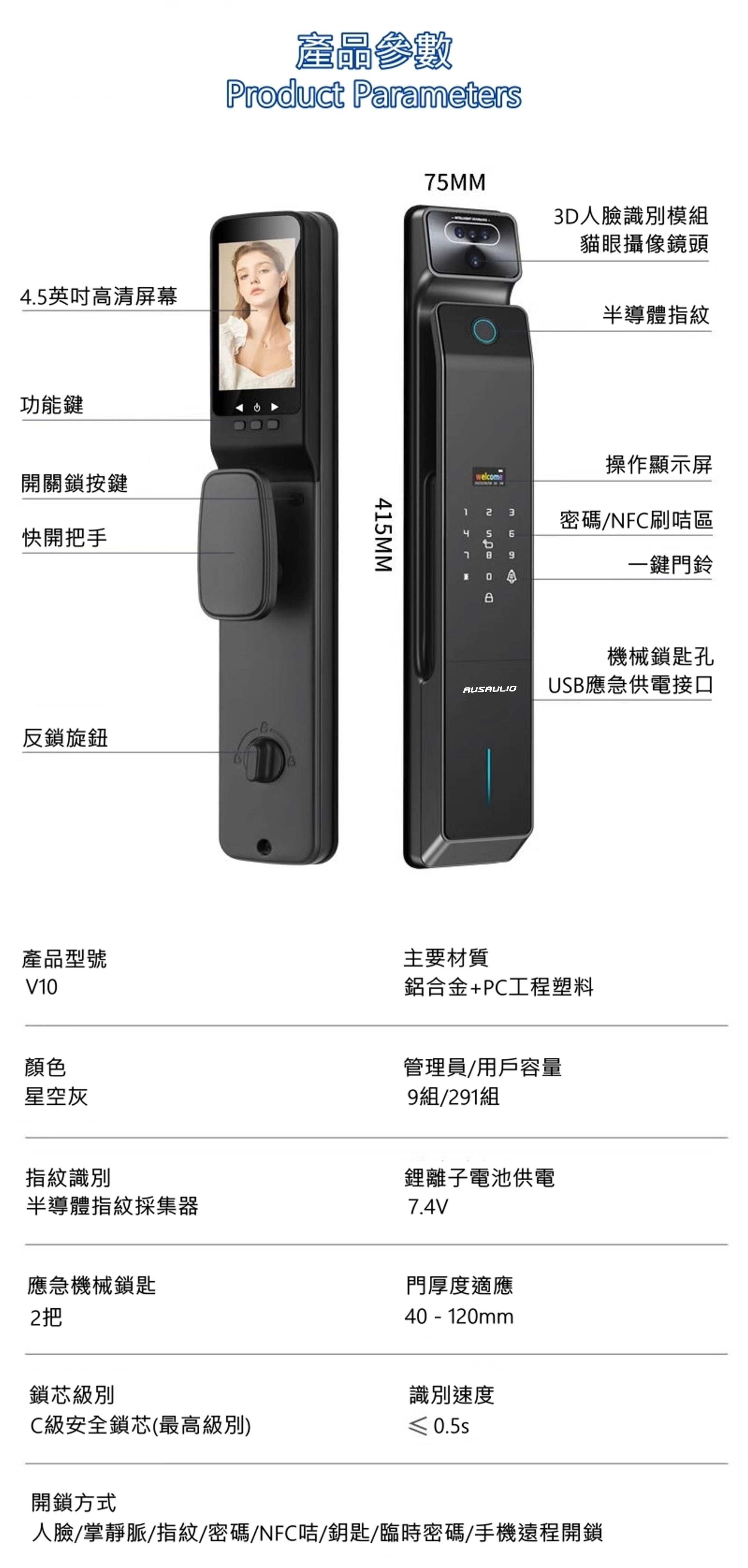*多重識別開鎖 (3D人臉/掌靜脈/指紋/密碼/刷卡/鑰匙)